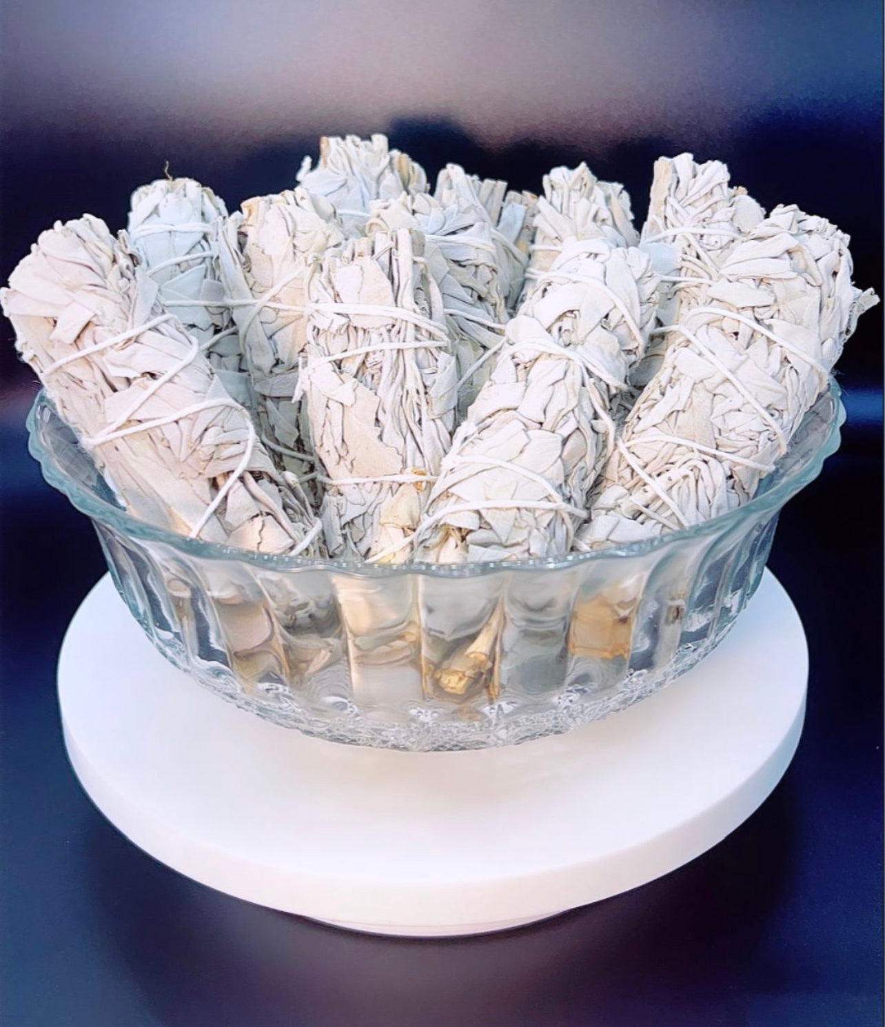 White sage is burned formeditation, smudging and cleansing of spirit and dwelling. In some beliefs, white sage smoke is believed to provide a barrier that prevents negative spirits from entering the room in which the ceremony is being held.