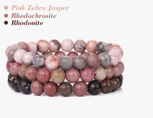3 Piece Rhodonite Healing Crystal Bracelet Set