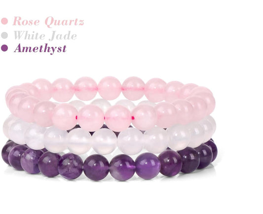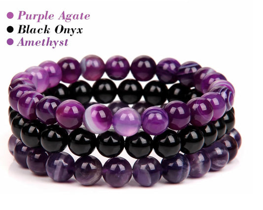 3 Piece Purple Agate Healing Crystal Bracelet Set