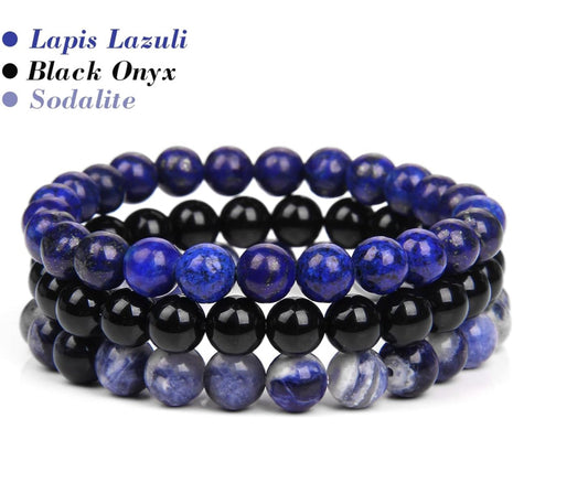 3 Piece Lapis Lazuli Black Onyx Healing Crystal Bracelet