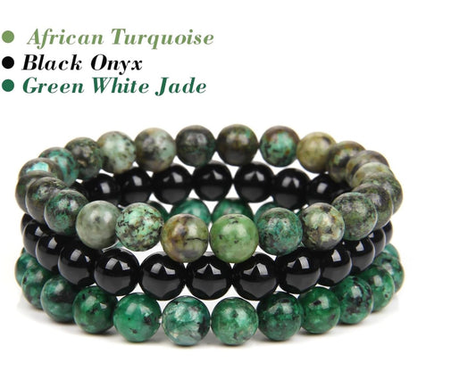3 Piece African Turquoise Healing Crystal Bracelet Set