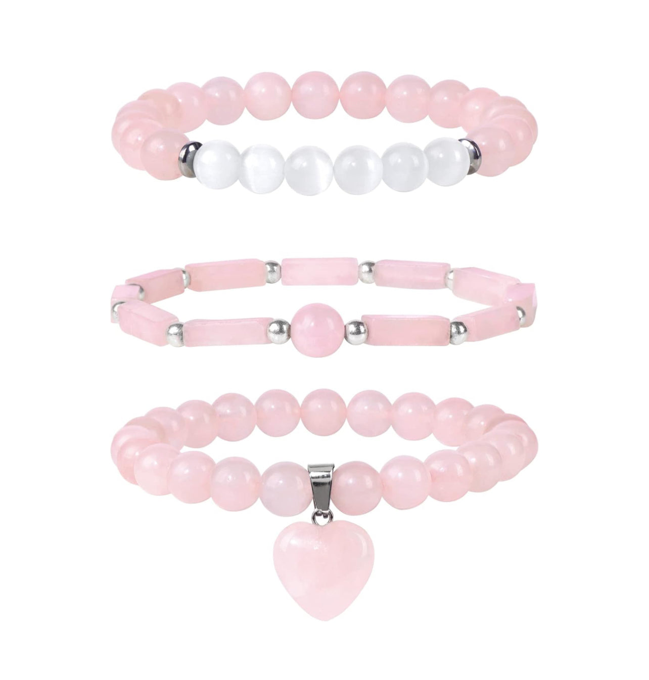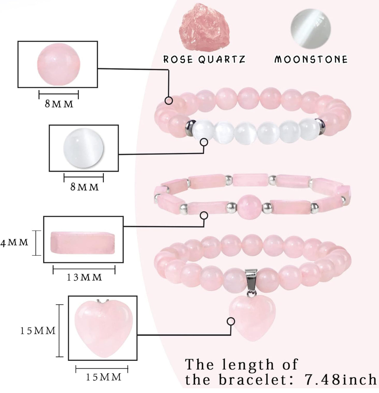 3 Piece Rose Quartz Healing Bracelet w/Moonstone